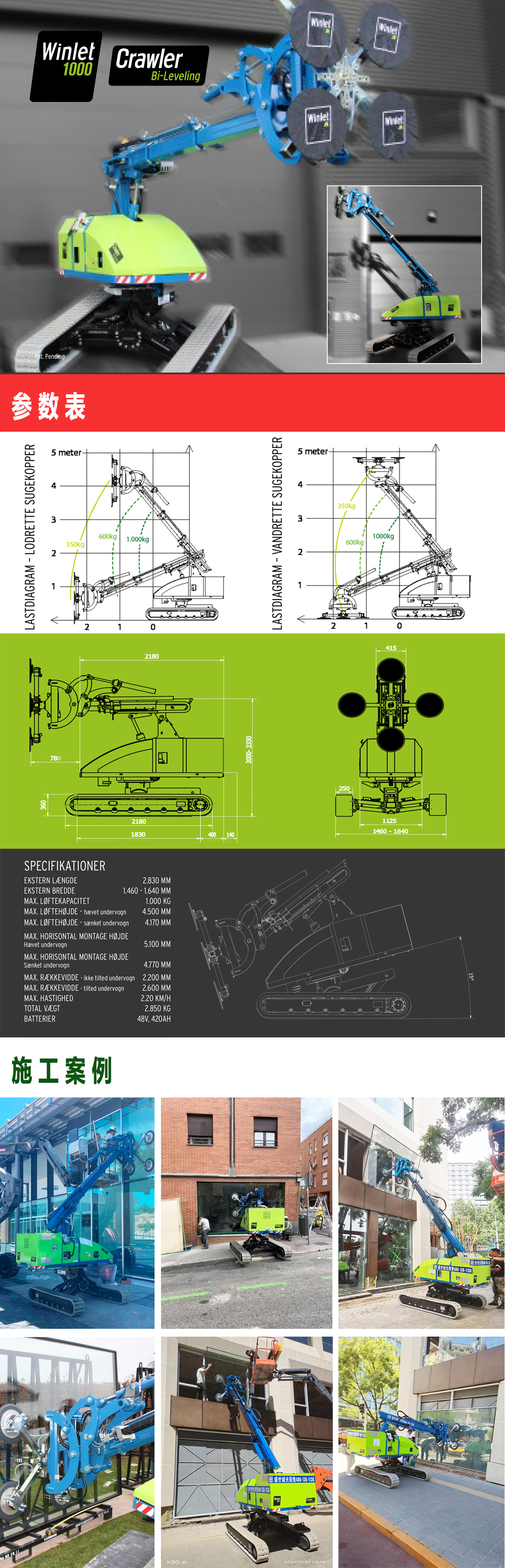??Winlet Crawler Bi-Leveling 將自動適應高達 15° (27%) 的縱向坡度和高達 14° (25%) 的橫向坡度。這有助于確保最佳安全性以及最有效的運輸和安裝。